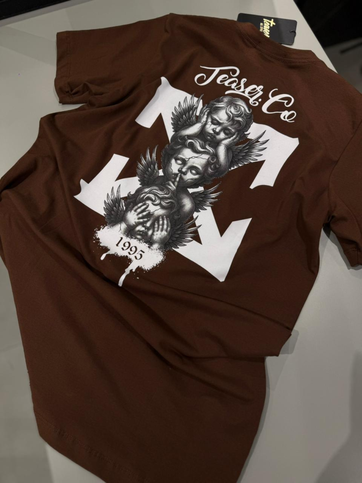 Design Exclusivo: O destaque é o grande emblema aplicado no peito em um tom de marrom escuro ou bronze. O emblema inclui a inscrição "TANKER JEANS" e a data "EST. 2019", além de um brasão estilizado abaixo.