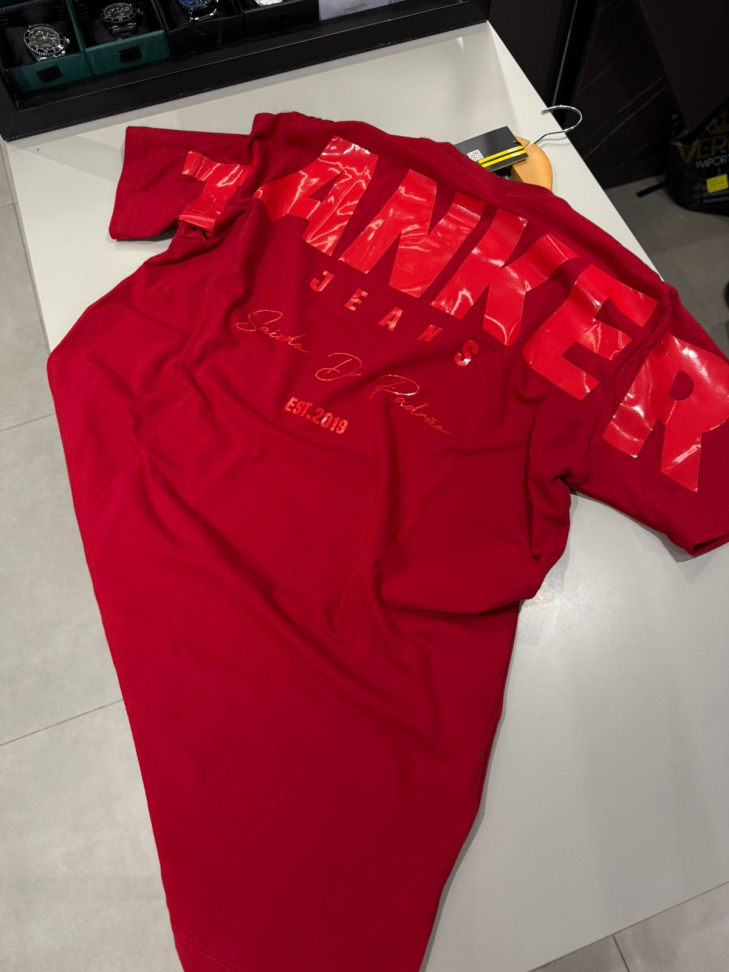 Seu design moderno e minimalista traz na parte frontal o logo TANKER em estampa discreta, reforçando a identidade da marca com sofisticação. Já na parte traseira, o destaque fica por conta da estampa marcante “TANKER JEANS” em tamanho maior, acompanhada da frase “Saindo do Padrão” e da assinatura EST. 2019, transmitindo atitude, autenticidade e exclusividade.